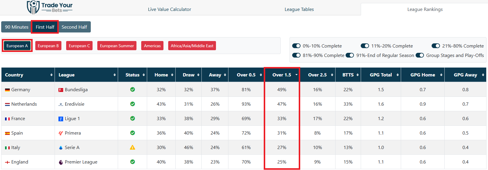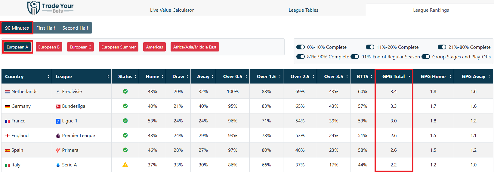 League Rankings